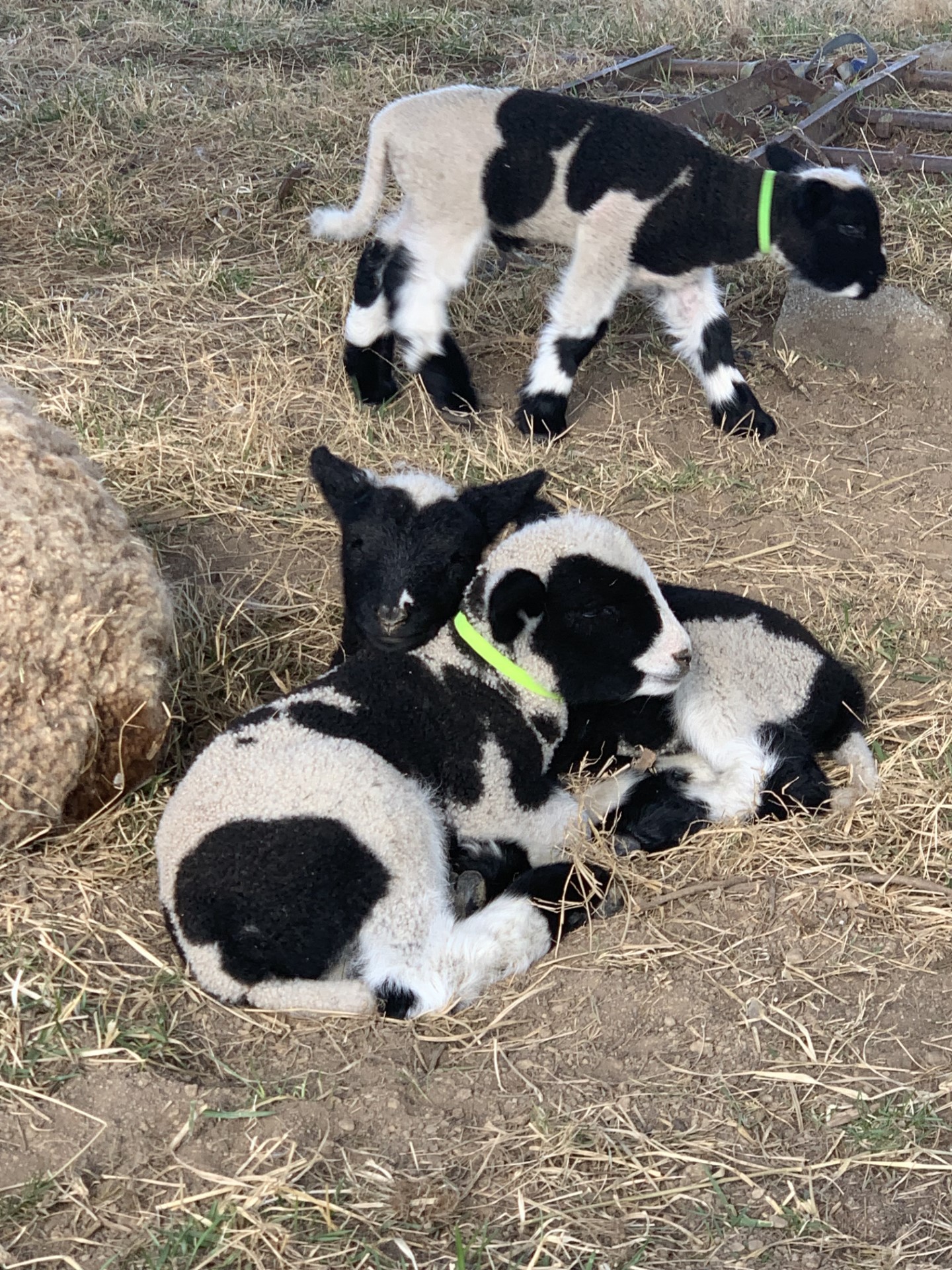 Ewe watches over lambs.