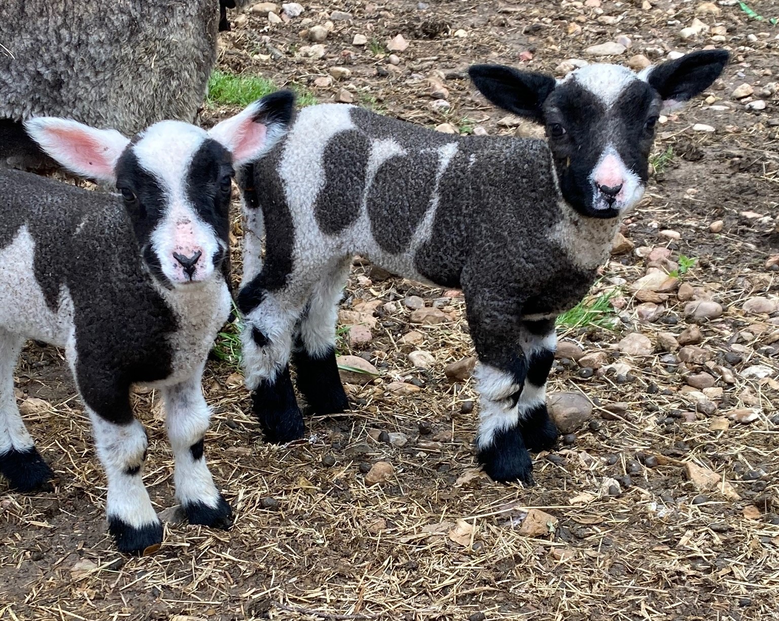 flock of Harlequin sheep, known for their unique and beautiful, spotted fleece.